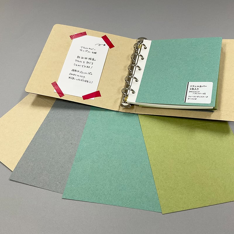 約30枚のリフィルをひとつにまとめられるM5スクエアサイズのリフィルカバーのセットです。